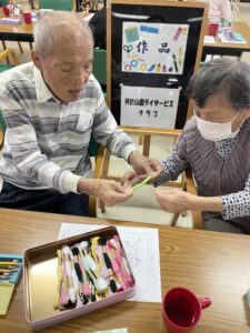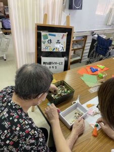 リハビリもあり、習字や脳トレもあり、手芸で小物づくりもあり、