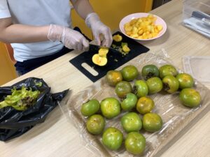 ホワイトボードでクイズ解きもあり、カラオケ、畑づくり、調理もあり。
