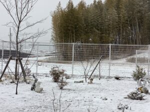 2月に入って8日、天気予報通り午前中から雪が降り始めました。
