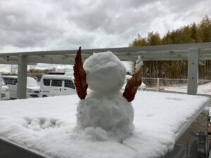 外の様子を見に行くと、去年と同じ場所にちょこんと「雪だるま」